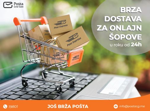 Brza dostava za onlajn šopove dio je palete usluga koje Pošta Crne Gore pruža u okviru usluge Post Express, namijenjene klijentima kojima je potrebna brza i pouzdana isporuka na teritoriji Crne Gore u kratkom roku.
