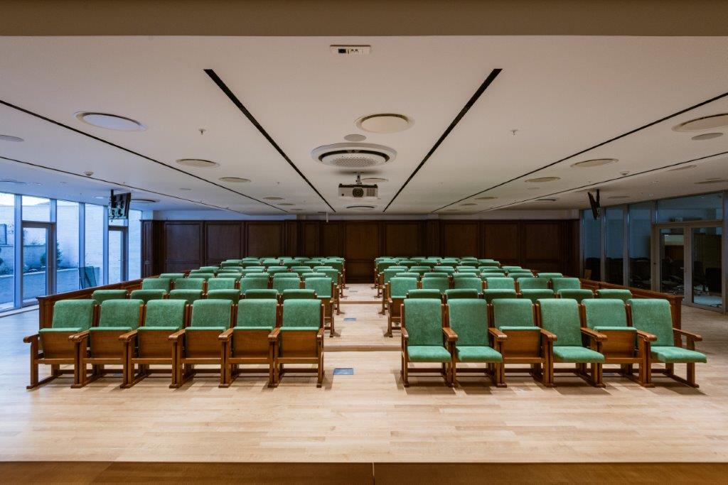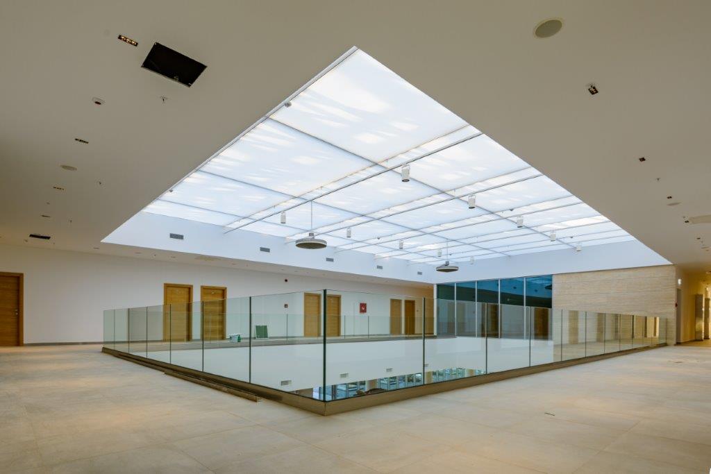Na drugoj etaži nalaze se sadržaji koji su u manjoj mjeri okrenuti ka publici van akademije. Tu prije svega spadaju svečana sala ili skupštinska dvorana sa pripadajućim sadržajima i atrijumom. Centralni prostor-atrijum daje značaj i karakter važnosti instituciji i funkcionalno je komplementaran salama omogućavajući predah i odmor u toku važnih sjednica ili svečanosti.