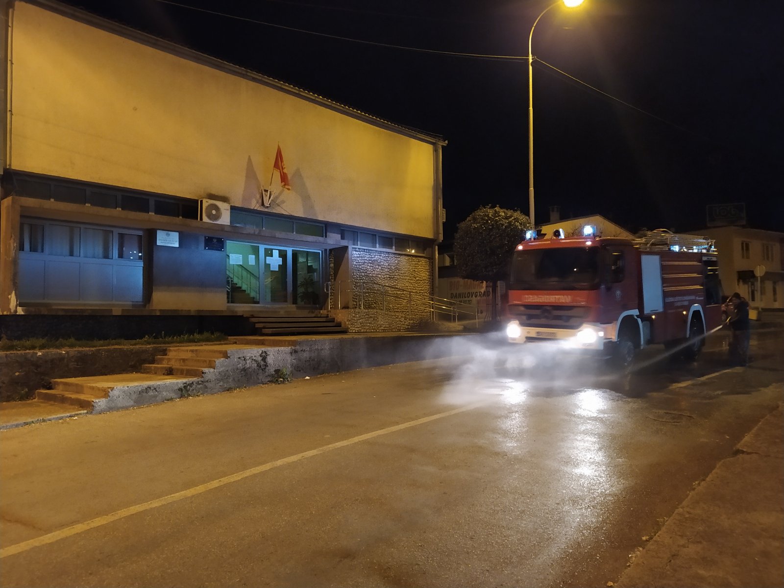 Društvo Dezinfekcija gradskih ulica (Galerija) By Redakcija 24 03 2020 13:120 PodijeliTweet 0 Komunalno preduzeće Danilovgrad zajedno sa Službom zaštite Danilovgrad redovno vrše pranje gradskih ulica, trgova i pijace. Ovo je, kako su naveli iz Opštine, samo jedna od mjera koje sprovode gradske službe.