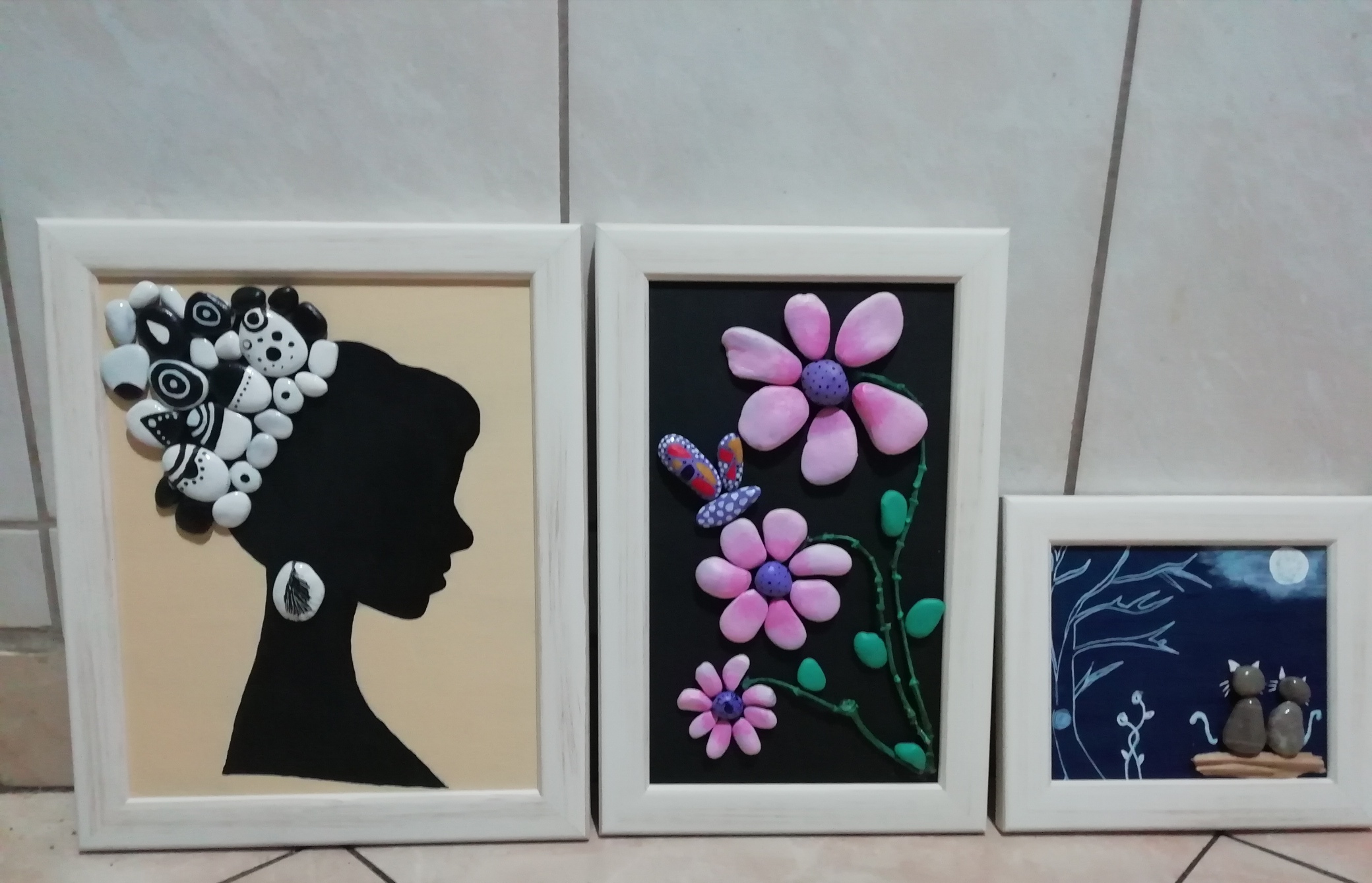 Sad kad pogledam svoje prve slike djeluju mi smiješno, naziru se početničke greške, koje su mi tad bile zanemarljive, a sad nedopustive. Hobi se pretvorio u vid zabave cijele moje porodice, svi smo u potrazi, svakodnevnoj, za kamenčićimakoji ce odgovarati za macu, cvijet, šta bi valjalo koristiti za podlogu, koje su boje najkvalitetnije i slično.