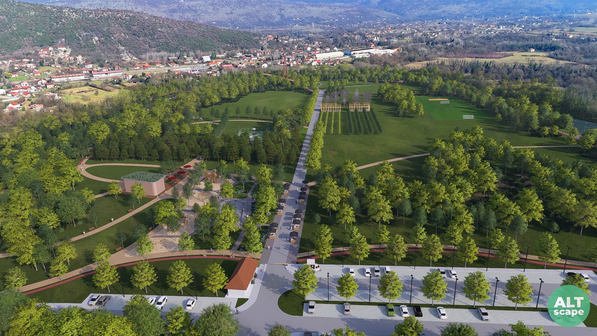 Studio ALT scape je uradio masterplan parka Landža u kom se jasno pokazuje postupak izrade idejnog rješenja stavljajući akcenat na očuvanje i unapređenje prirodnog pejzaža uz integraciju relevantnih, ekoloških i kulturnih sadržaja.