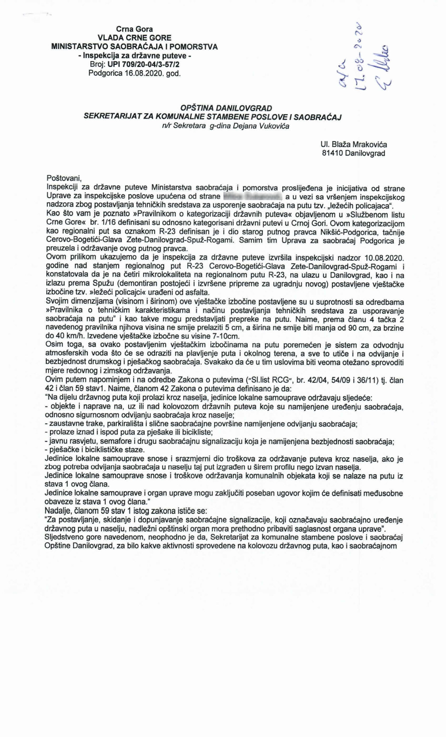 U cilju prevencije saobraćajnih nezgoda i poštovanja ograničenja brzine kretanja, nadležne službe su u julu mjesecu na više lokacija u gradu postavile usporivače brzine, takozvane ležeće policajce. Isti su, kako će se složiti većina Danilovgrađana, potrebni na gradskim saobraćajnicama – ipak, sporan je način na koji su postavljeni.