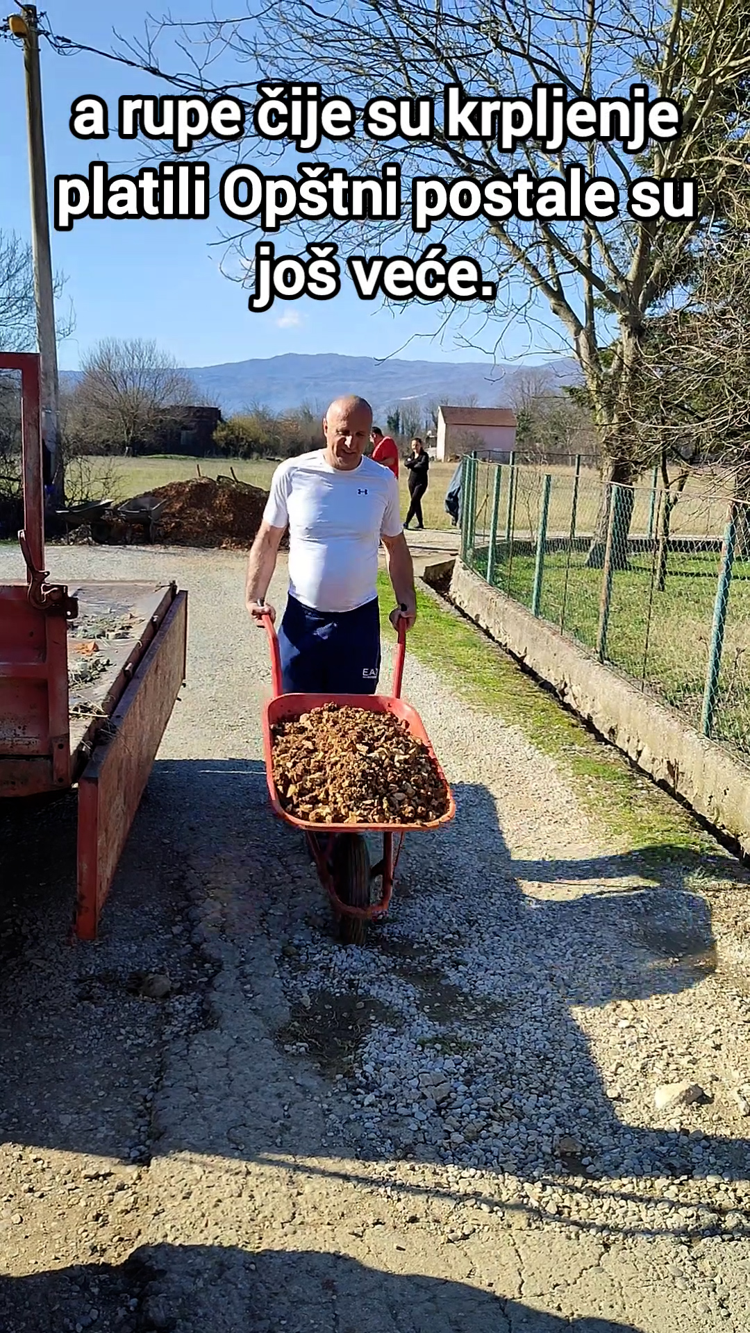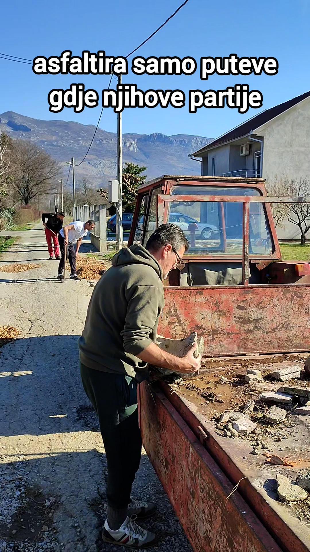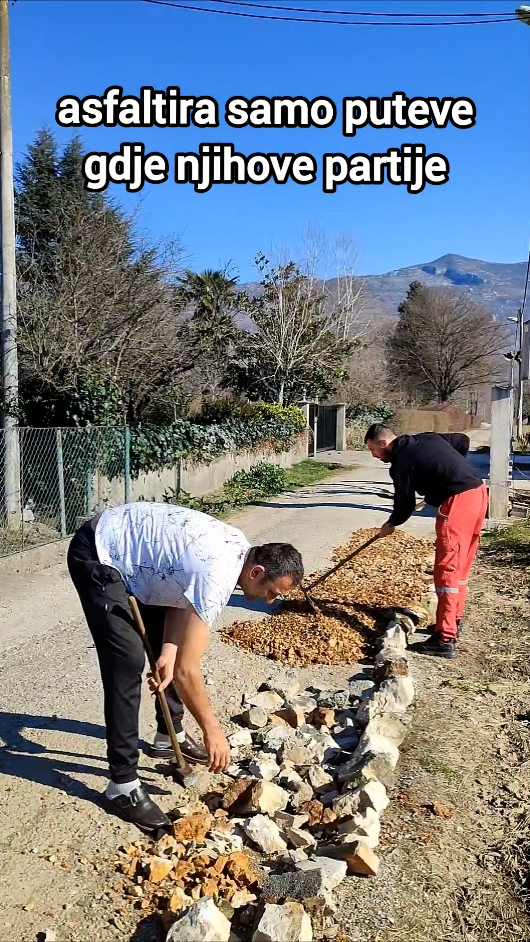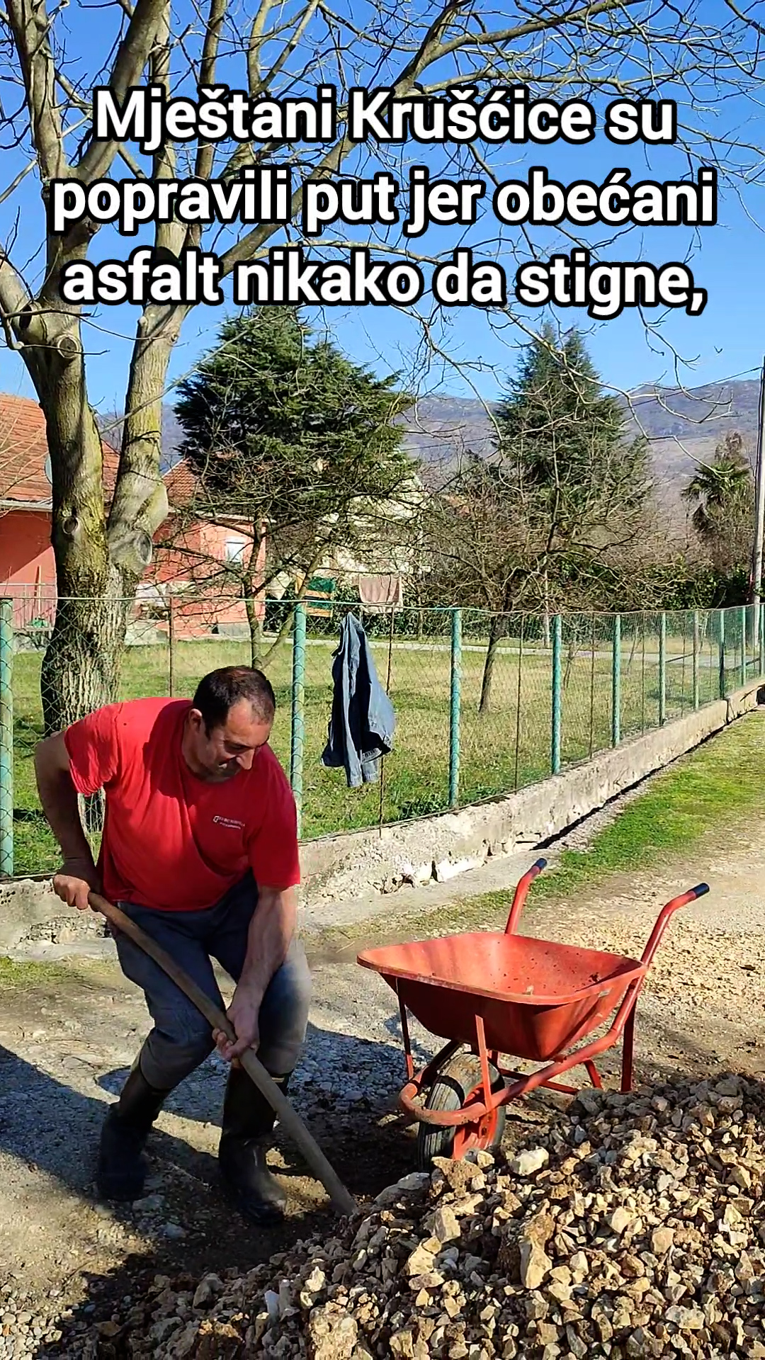 Mještani sela Kruščica u blizini Martinića su se organizivali da poprave svoj put jer, kako kažu, asfalt koji im je obećala Opština još nije stigao.
