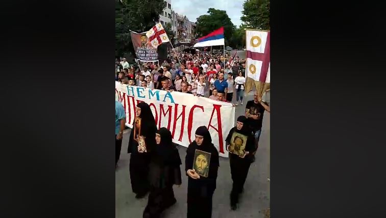 Litija je prošla pod sloganom „Nema kompromisa“, riječima blaženopočivšeg protojereja-stavrofora Momčila Krivokapića, koji je svojevrstan zavjet oca Moma omladini Crne Gore.