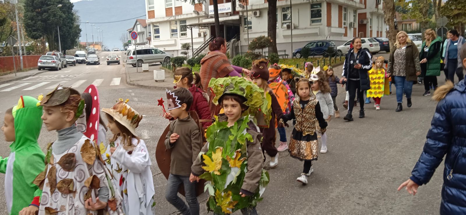 Naime, djeca dvije starije vaspitne grupe, sa svojim vaspitačicama i medicinskim sestrama, ovogodišnju Jesenju svečanost upriličila su šetnjom pod maskama od vrtića, ulicom Lazara Đurovića, potom Njegoševom do Trga 9. decembar i nazad.
