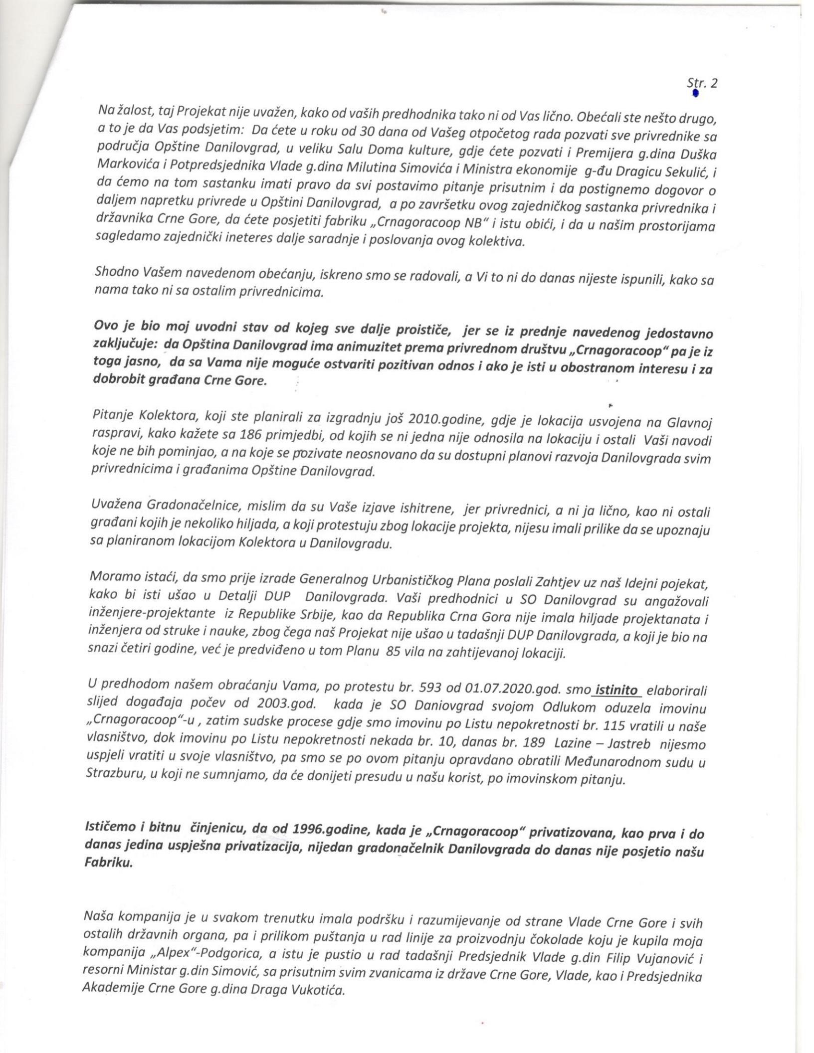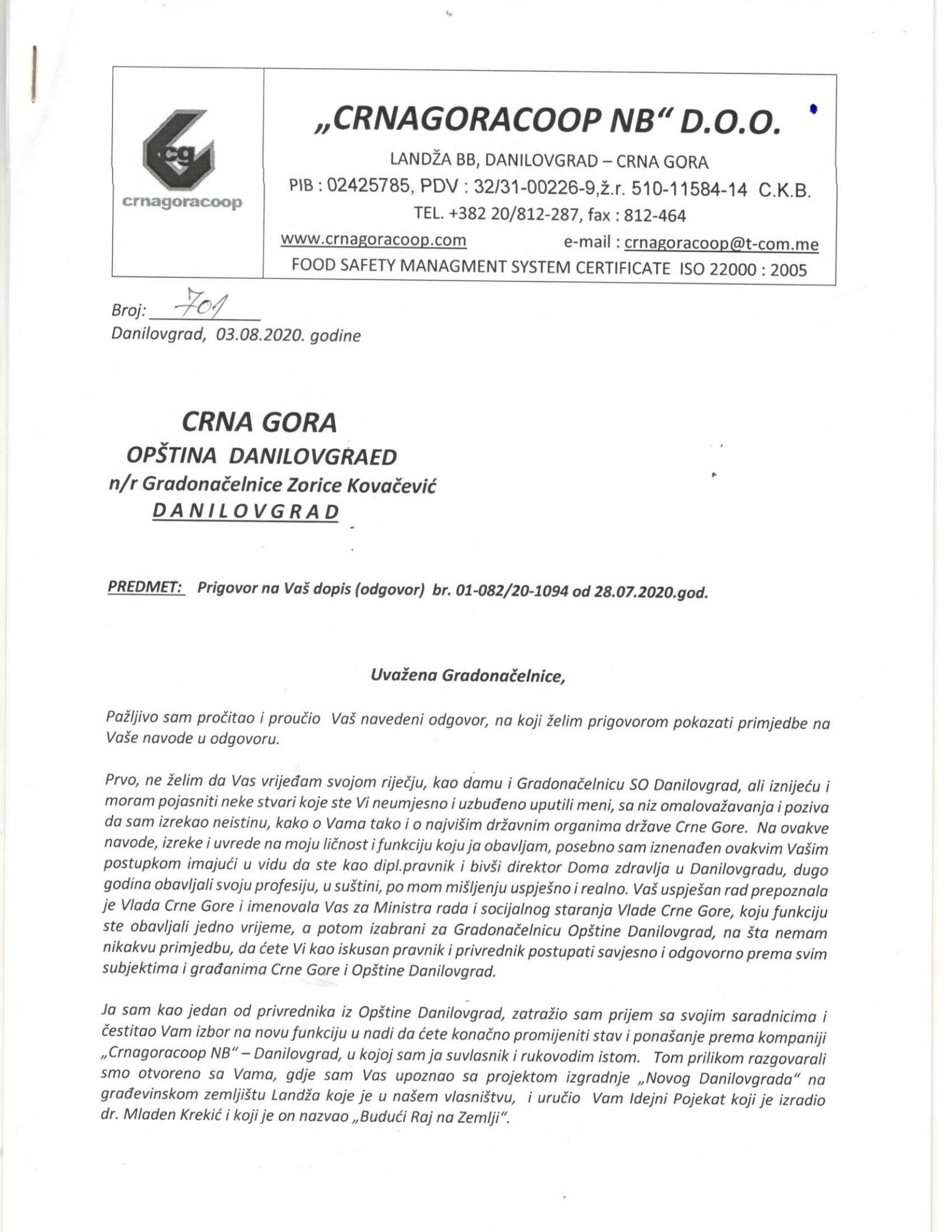 Povodom pisma Nedeljka Babića, kojeg smo 02.07.2020. objavili na našem portalu a koje se tiče izgradnje kolektora u Landži, oglasila se i predsjednica opštine Danilovgrad. Odgovor na pismo Nedeljka Babića prenijeli smo integralno u na našem portalu na sledećem linku.